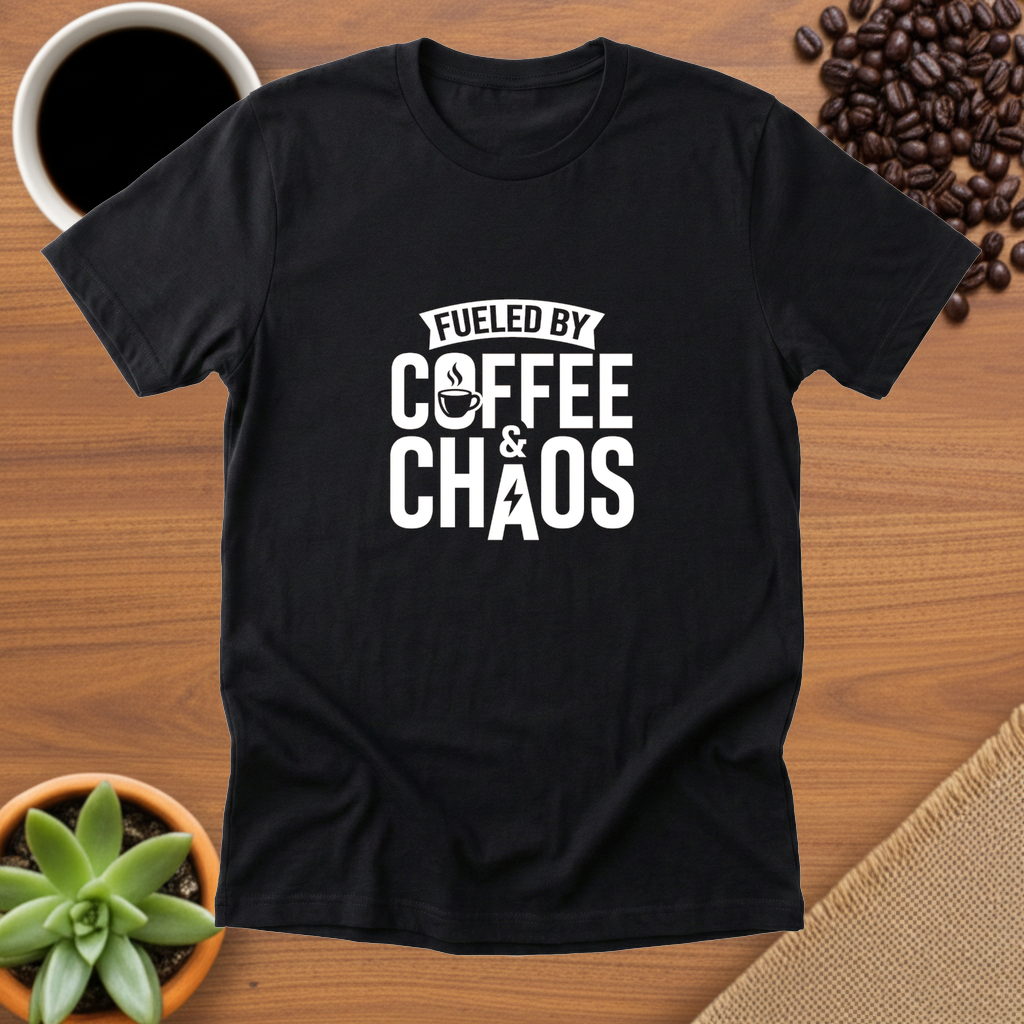 Embrace the madness with our "Fueled by Coffee & Chaos" T-shirt! This tee perfectly captures the daily grind (pun intended!) of surviving on caffeine and a touch of delightful disarray.